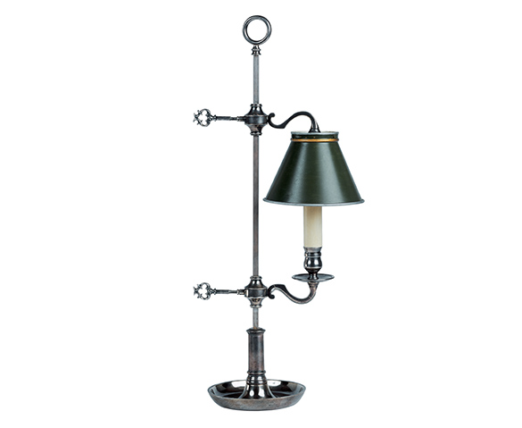 Lampes RĂ©fĂ©rence : 981DĂ©signation : Lampe « étudiant » Finition : Vieil argent LumiĂšres : 1 Hauteur : 57 cm | â : 28 cm Hauteur : 22″ | â : 11″ Fiche PDF*non contractuel