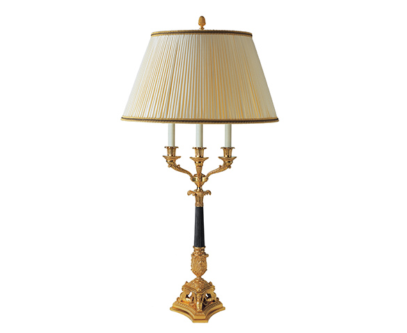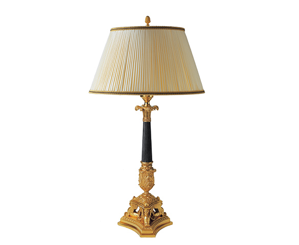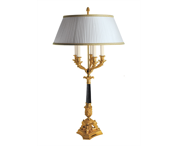 Lampes RĂ©fĂ©rence : 979 BISDĂ©signation : Lampe Empire Finition : Or fin et canon de fusil LumiĂšres : 5 Hauteur : 100 cm | â : 60 cm Hauteur : 39″ | â : 24″ Fiche PDF*non contractuel