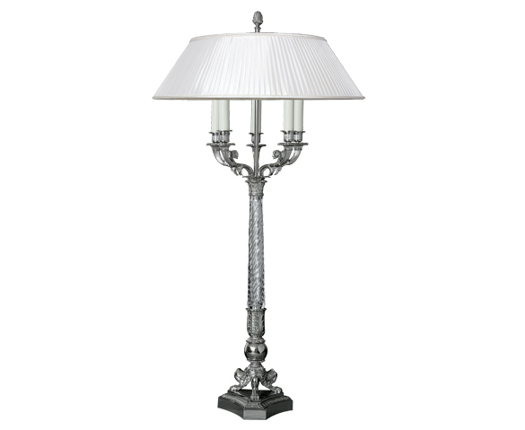Lampes RĂ©fĂ©rence : 979CDĂ©signation : Lampe Empire Finition : Nickel and fut cristal LumiĂšres : 5 Hauteur : 100 cm | â : 60 cm Hauteur : 39″ | â : 24″ Fiche PDF*non contractuel